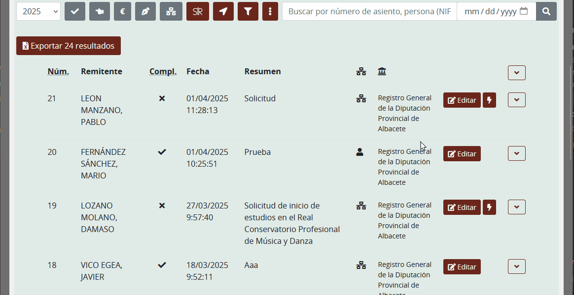 La API REST del registro incorpora ahora nuevas llamadas (filterregistrosv2, filterentradasv2 y filtersalidasv2) que devuelven además de los registros el número de resultados.